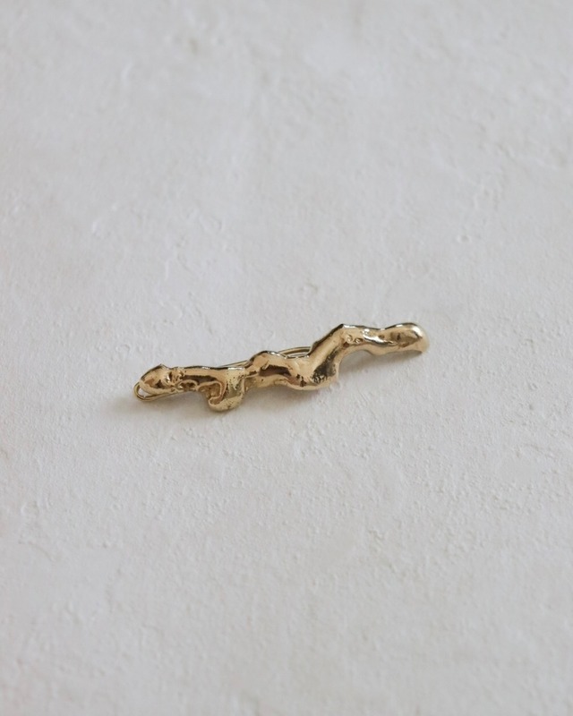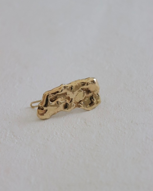 new hair pin 存在感たっぷりの、大きめサイズの新作ヘアピン。 ひとつ着けるだけで、ラフにまとめた髪もこなれた印象に仕上がります。 個体差がございますので ①②のどちらかを選びご購入くださいませ。 制作の過程で金属がほんのりと赤くなっている 部分がある場合がございます。 着ける際には髪の毛を少なく取ってお使いくださいませ。 ※ハンドメイドですのでひとつひとつ個体差がございます。 素材 ゴールド : 真鍮 真鍮を使ったアイテムです。 真鍮は空気中の成分や汗で使用するごとに特有の色味がでます。 色の変化をお楽しみ頂けますが、光沢のある色味に戻したい方は 貴金属磨き等で磨いて頂ければ元の色に戻す事ができます。 ご購入頂いたお客様に貴金属磨きをプレゼントしております。 また、指紋等で錆が付いた場合は貴金属磨きでは取れませんので磨く必要があります。 有料にはなりますが、メンテナンスも致しますので気軽にご連絡下さいませ。 日常のお手入れとしては 使用した後に柔らかい布で軽く拭きあげて下さい。 素材 真鍮 サイズ 横8 縦5.5cm