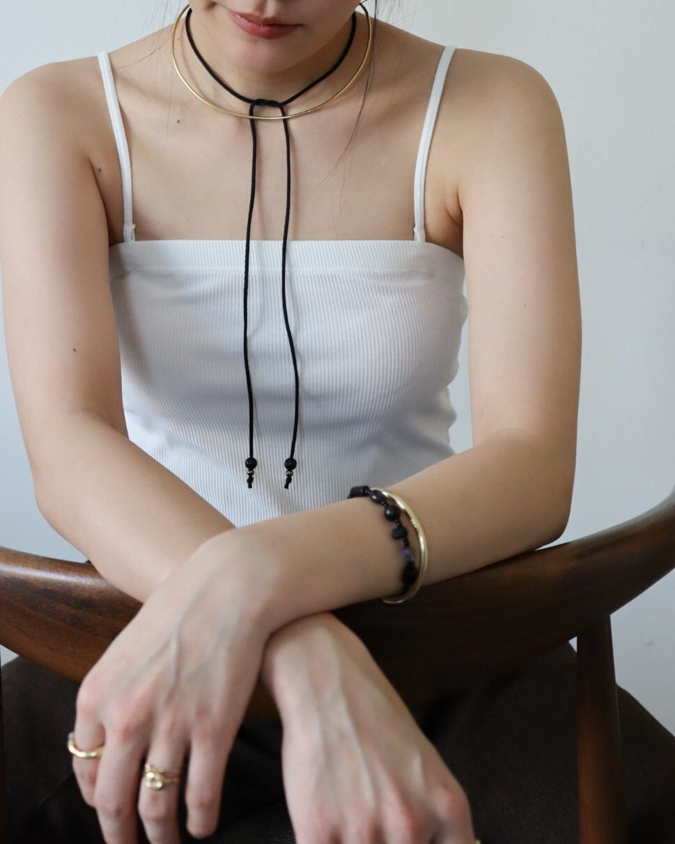 細身のシンプルなチョーカーにコードが組み合わさったアイテムです。
