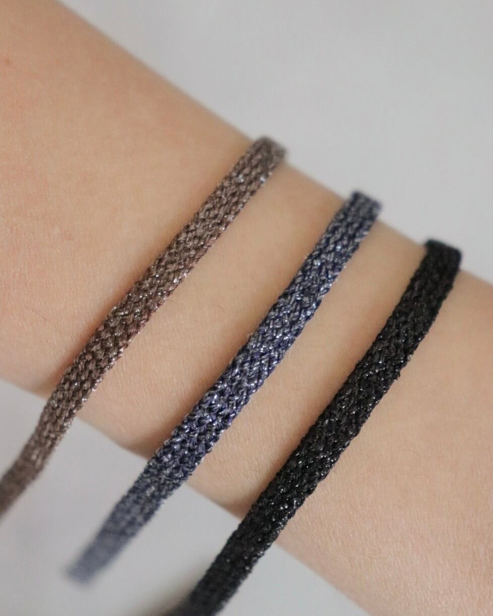 動くたびに控えめに光を反射する細かなラメが、シンプルながら華やかな印象に。