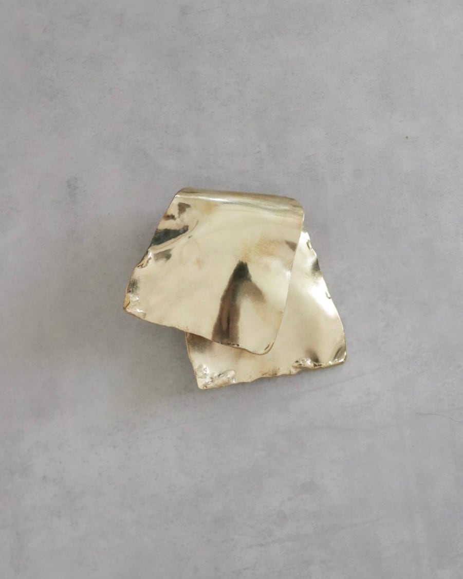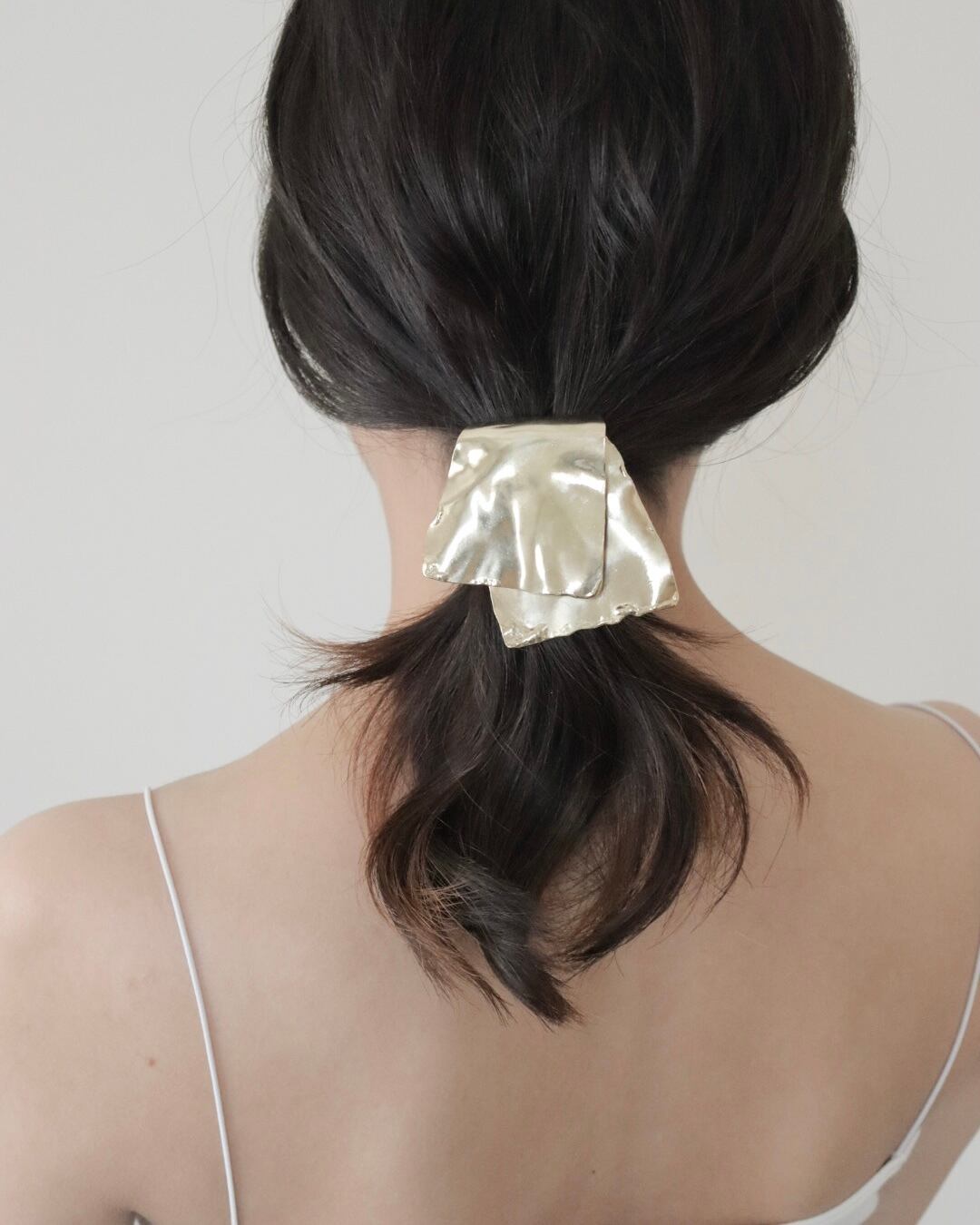 布を折りたたんだような柔らかなフォルムを、金属で表現したヘアアクセサリー。