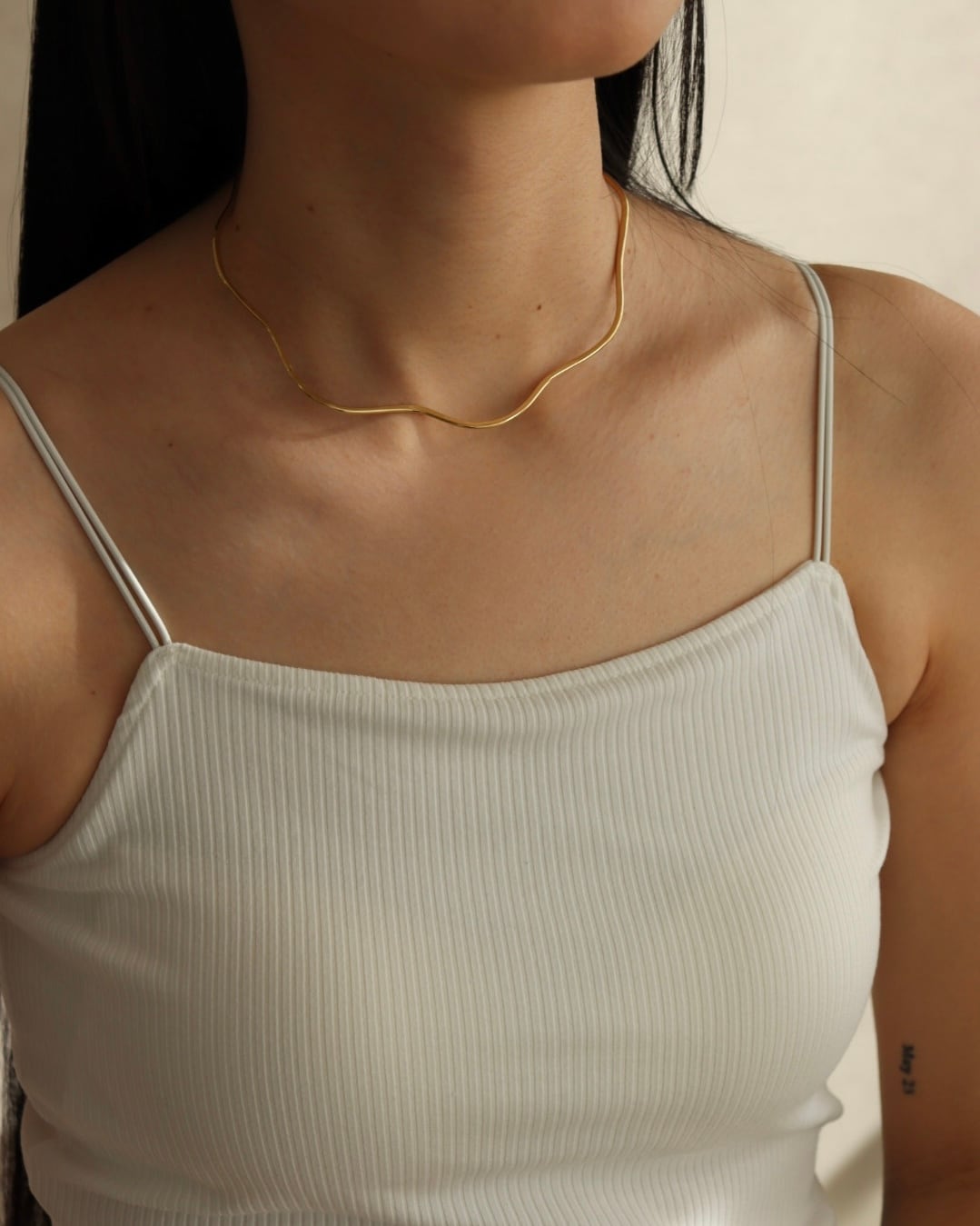 細身のチョーカーで全体的に緩やかなカーブがついています。