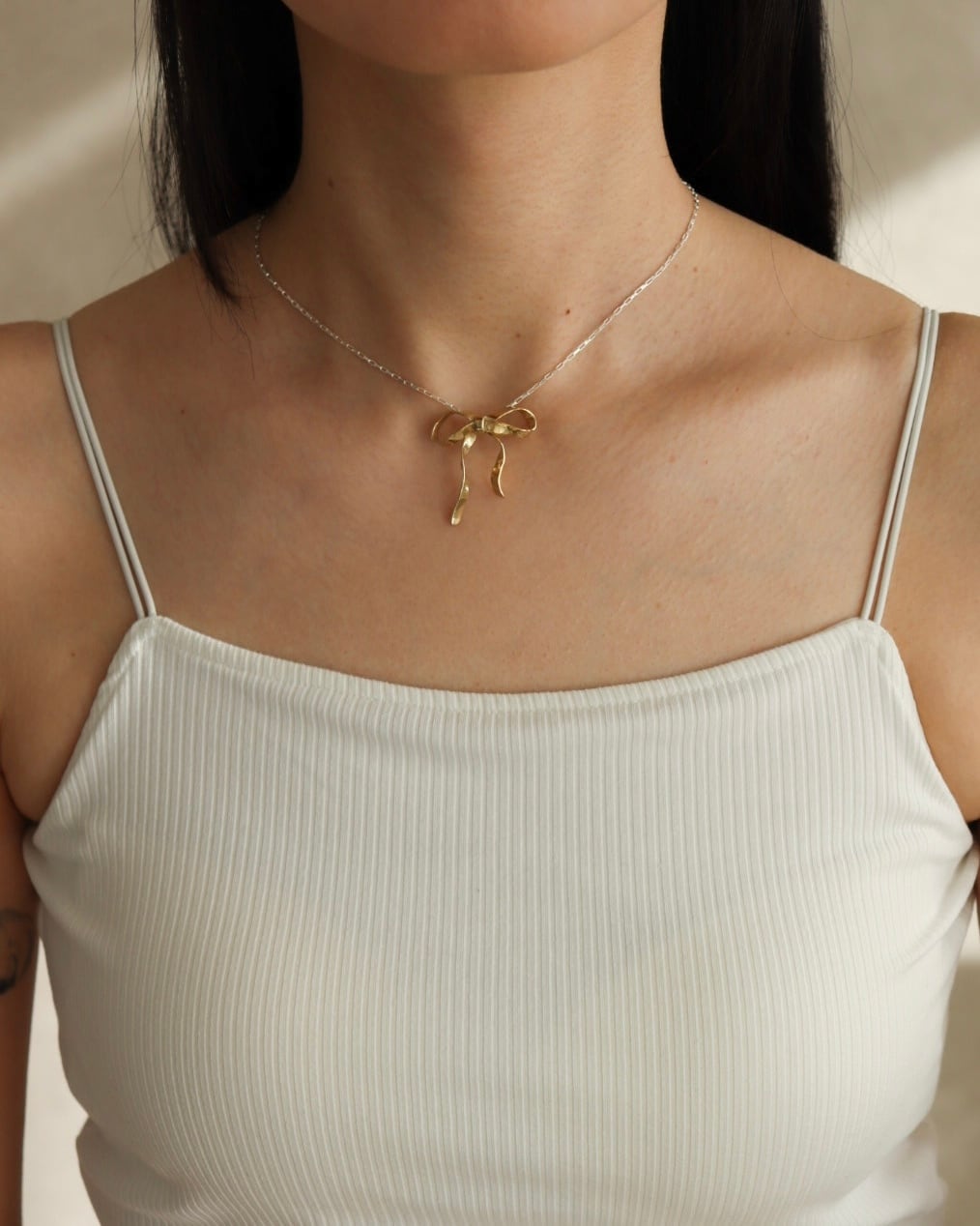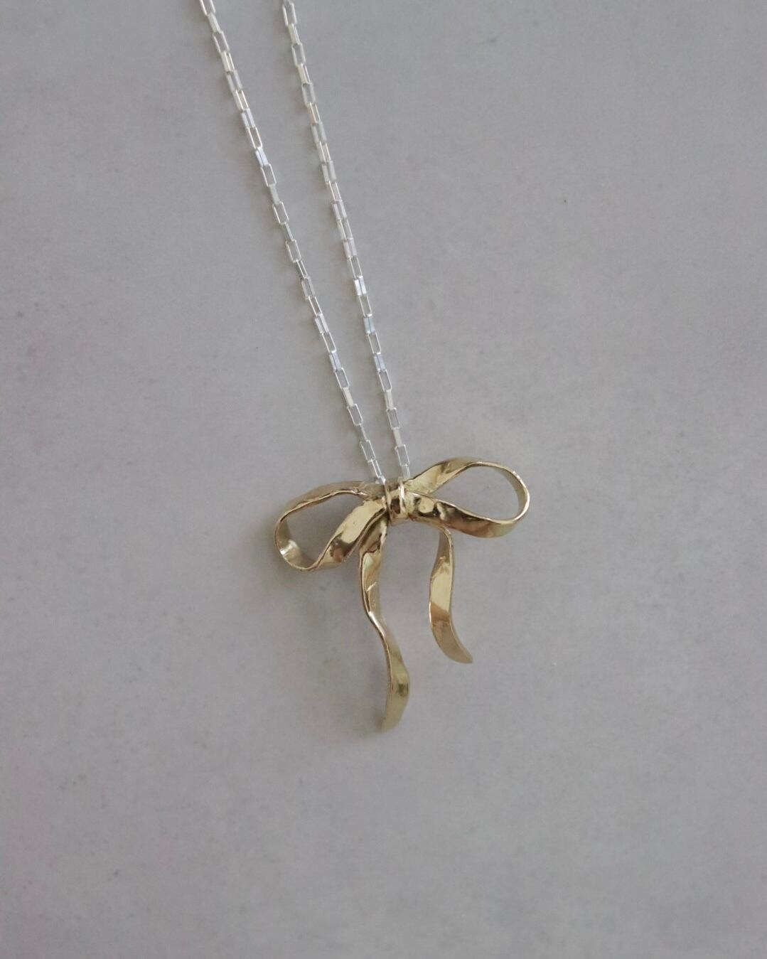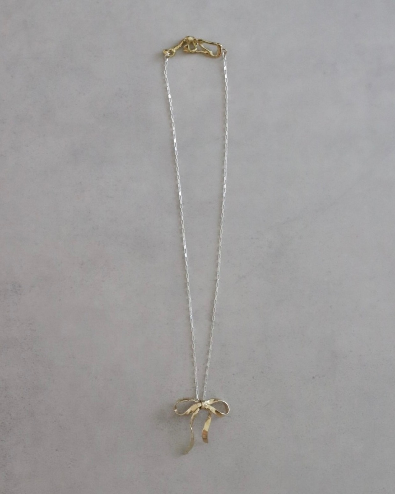 柔らかい質感のリボンを作りネックレスに仕立てました。
