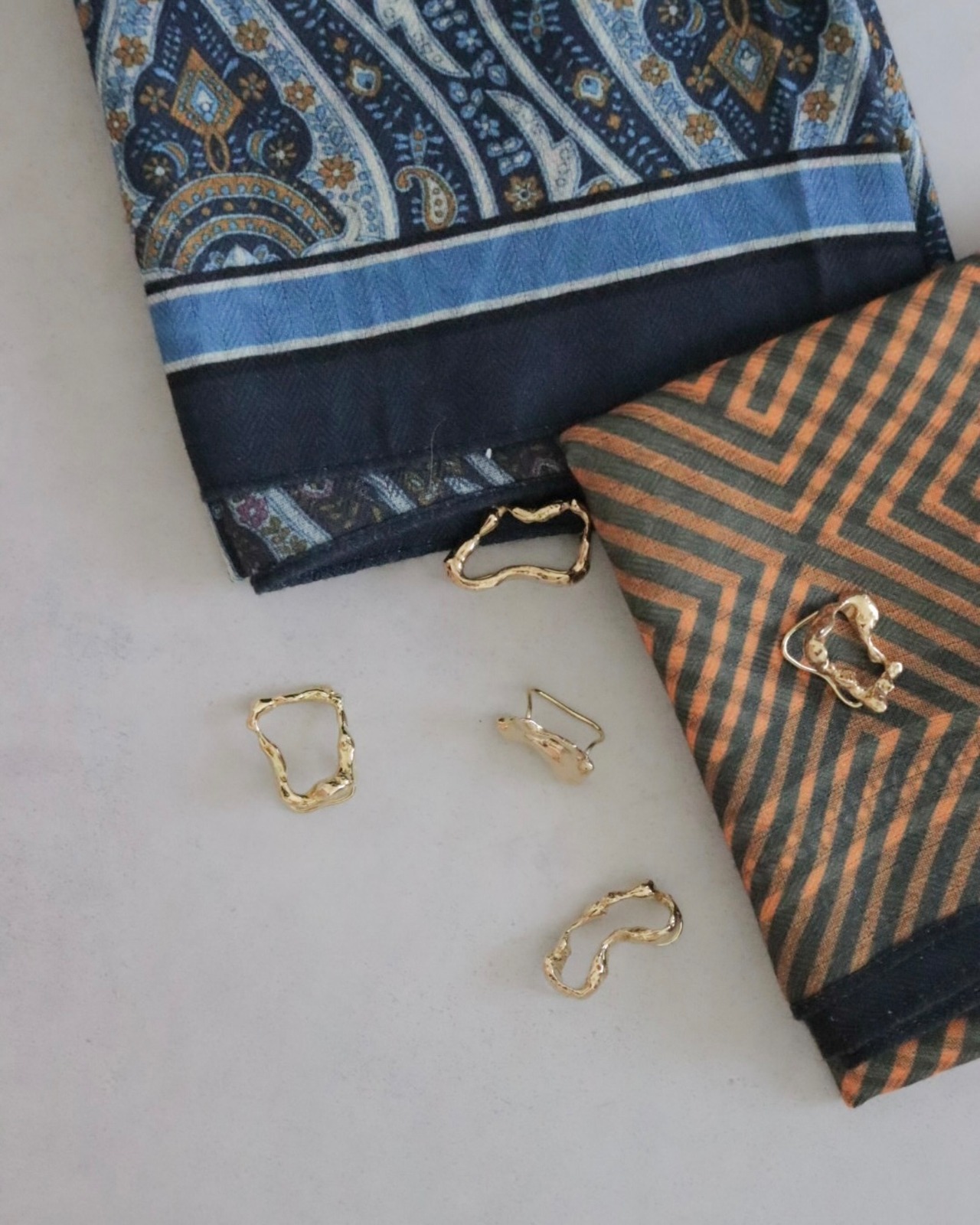 スカーフが長い場合や、腰巻きなどしっかり留めたい時は、